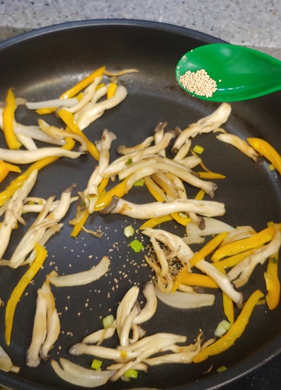 마지막으로 후추가루를 뿌려주면 버섯의 잡냄새를 잡을 수 있어요.